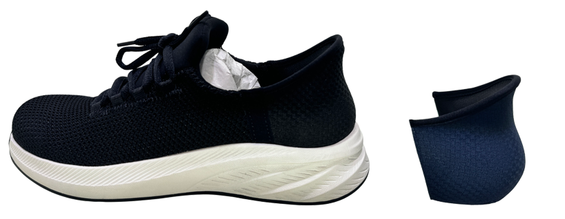 4)More designs elements to add fashion to your shoes : this 5D integrated heel counter can made with different molding pattern outside , it can also can change different colors or printed fabric contrast to main body of shoes , all of these can make shoes more attractive with fashion elements . As well this heel counter can be made in different shapes as your design to match your whole design .